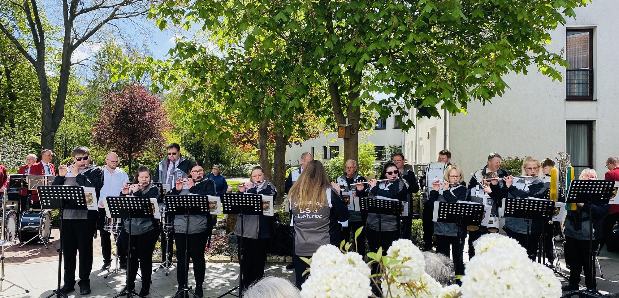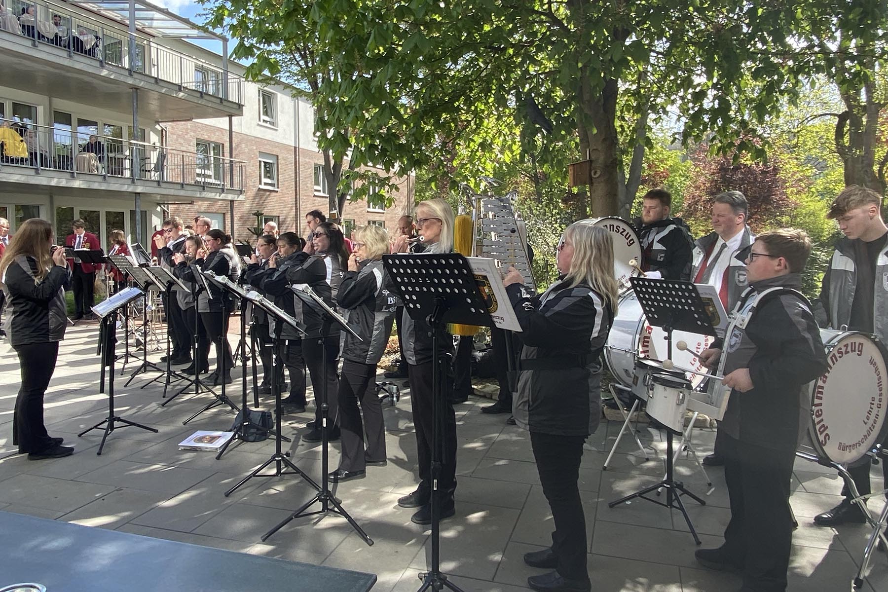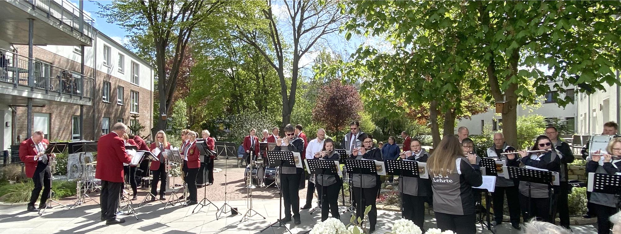 Am heutigen Sonntagvormittag, 26. April 2026, fand im Rosemarie-Nieschlag-Haus an der Iltener Straße 21 in Lehrte das traditionelle Frühschoppenkonzert statt. Es lockte zahlreiche Bewohner sowie Gäste in den idyllischen Garten der Einrichtung. Eingeladen waren auch Angehörige und Freunde.