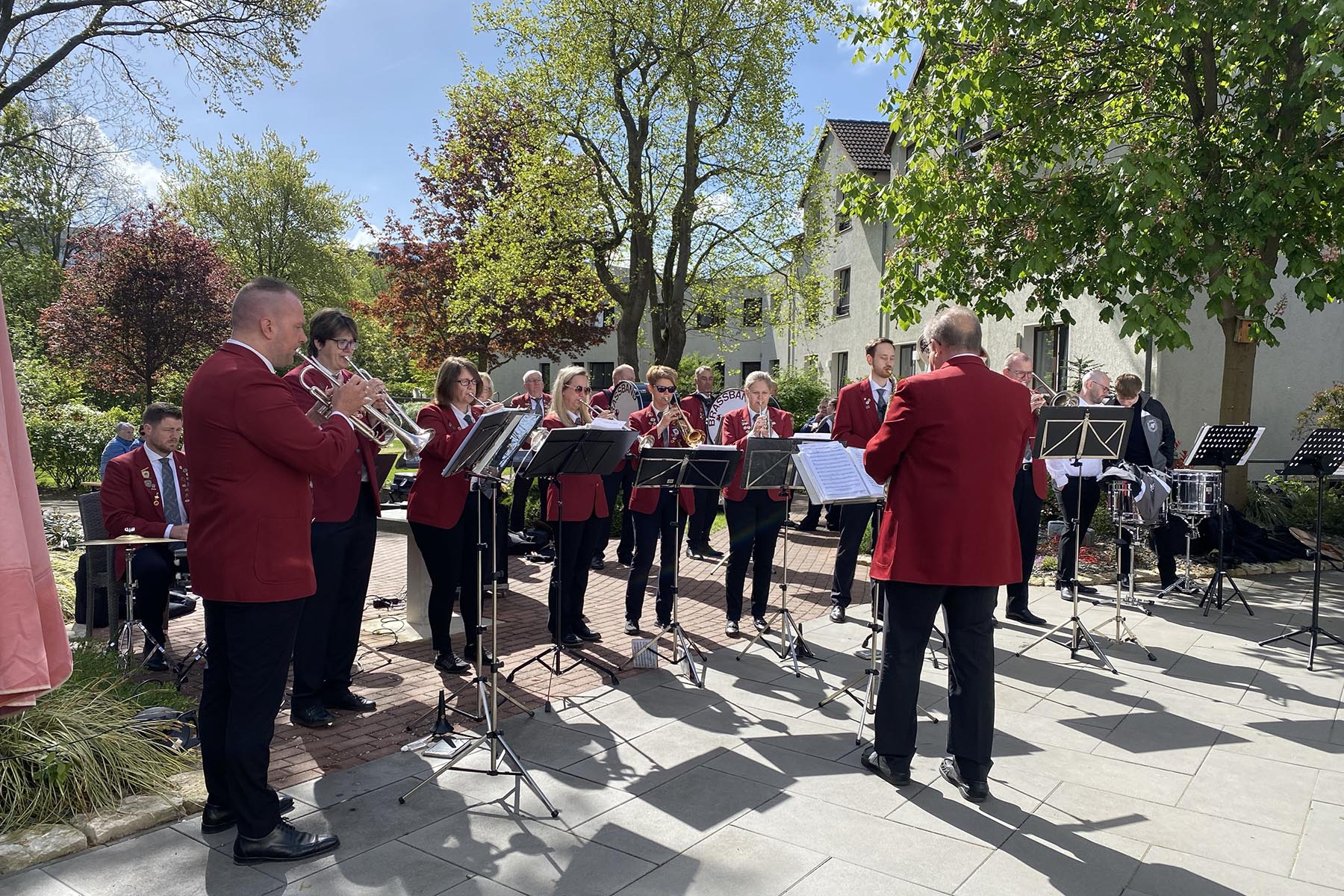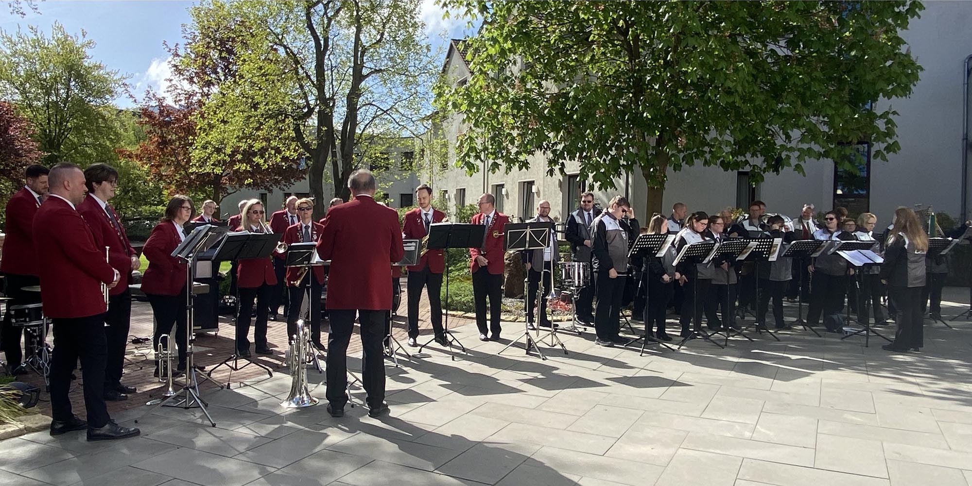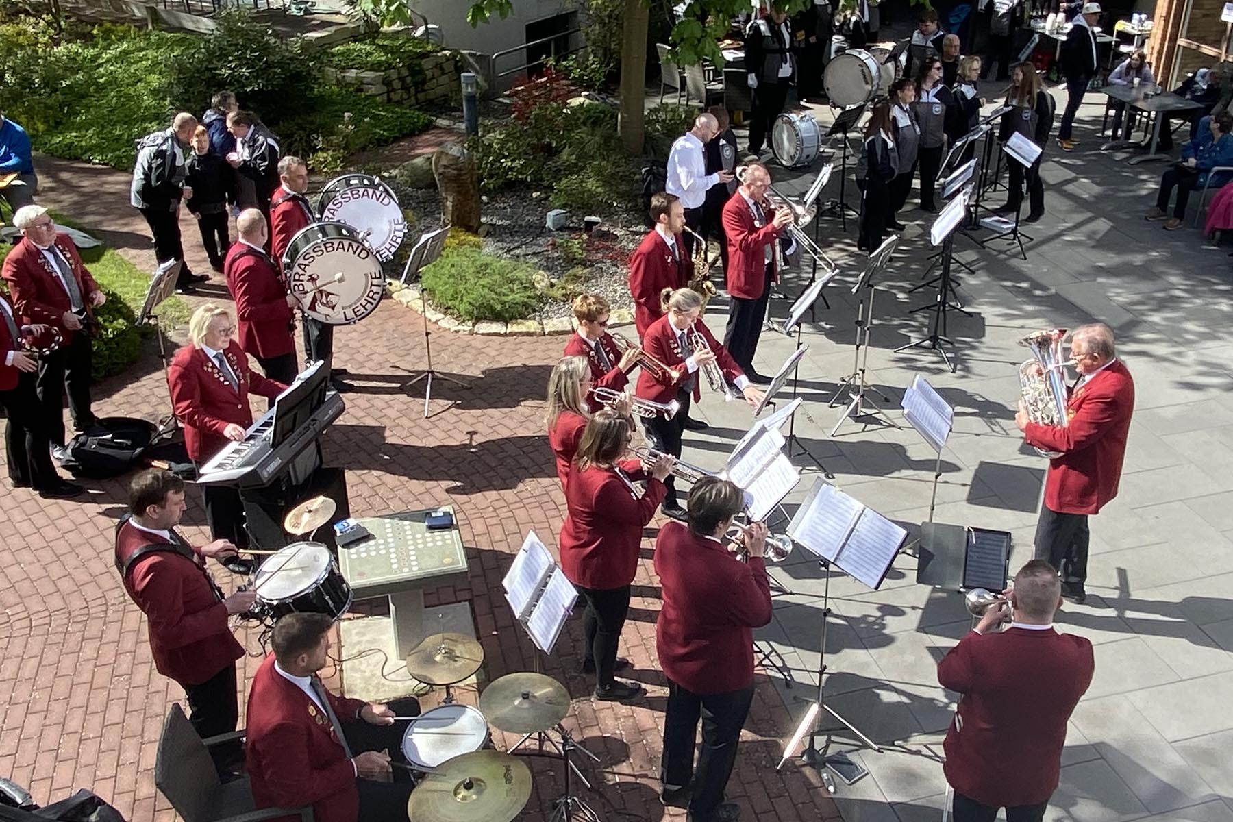 Am heutigen Sonntagvormittag, 26. April 2026, fand im Rosemarie-Nieschlag-Haus an der Iltener Straße 21 in Lehrte das traditionelle Frühschoppenkonzert statt. Es lockte zahlreiche Bewohner sowie Gäste in den idyllischen Garten der Einrichtung. Eingeladen waren auch Angehörige und Freunde.