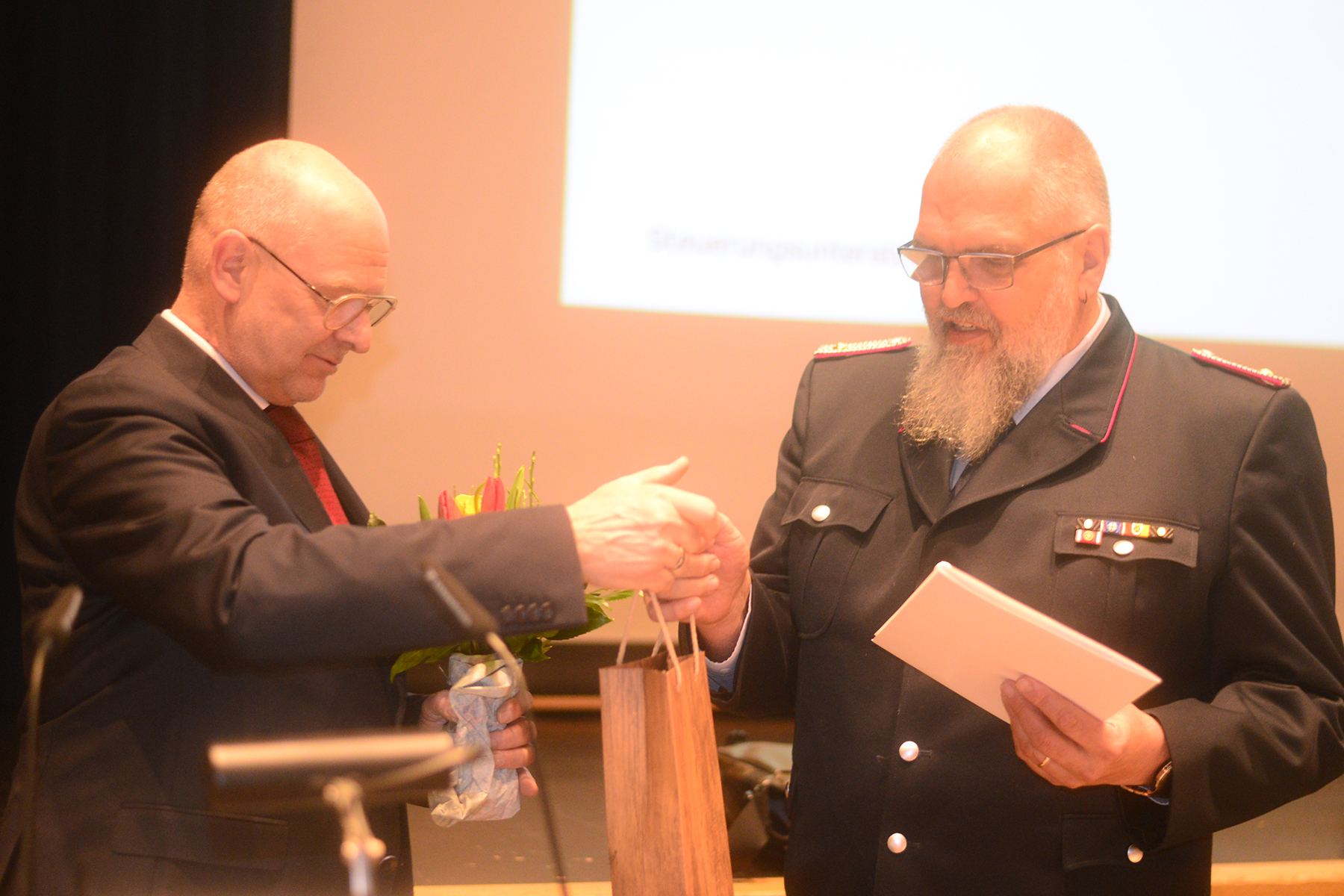 Der frühere Ortsbrandmeister Kai Böttcher wurde zum Ehrenortsbrandmeister ernannt.