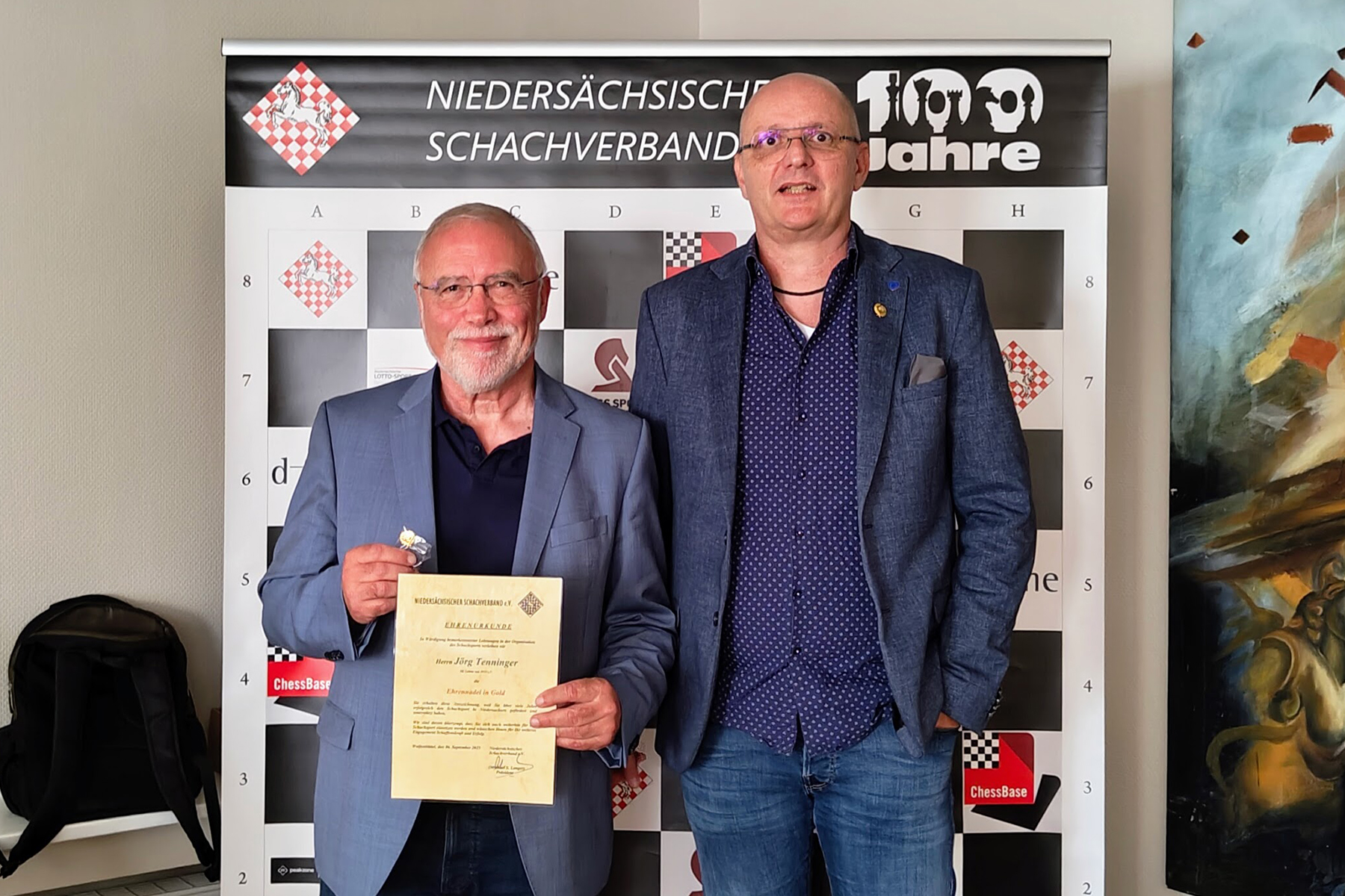 - Sonntag, 28. September 2025, 17:54 UhrBeim Kongress des Niedersächsischen Schachverbandes (NSV) wurde Jörg Tenninger vom Schachklub (SK) L…